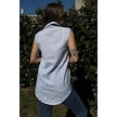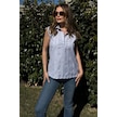 Kadın Mavi Çizgili, Dokulu Yazlık Kumaş, Yarım Patlı, Sıfır Kollu Bluz Mavi
