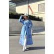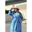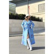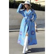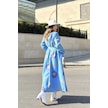 Kadın Mavi Desenli Astarlı, Ceket Yaka, Beli Kemerli, Rahat Kalıp, Digital Baskı, Uzun Kaşe Kaban Mavi