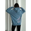 Kadın Mavi Do What Makes You Happy Baskılı Oversize Kapüşonlu Sweatshirt Mavi