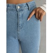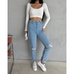 Kadın Mavi Likralı Diz Yırtmaçlı Dar Paça Jean Lazer Yırtıklı Kot Pantolon Mavi