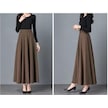 Kadın Maxi Etek Elastik Yüksek Bel Büyük Etek A Kesim Uzun Etek Cepli Düz Renk Ofis Siyah