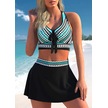 Kadın Mayo İkili Set Bölünmüş Mayo Büyük Beden Etek Mayo Baskılı Çok Renkli