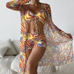 Kadın Mayo Yüksek Bel Bikini Seti Üç Adet Kadın Uzun Kollu Cover Up Mayo Plaj Mayo Sarı