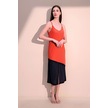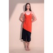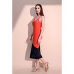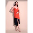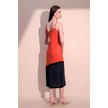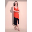 Kadın Mercan & Siyah Rahat Asimetrik Bloklu Yırtmaçlı Askılı Uzun Elbise Mercan