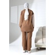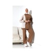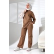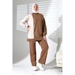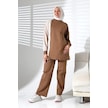Kadın Mevsimlik Alt Üst Rahat Kahverengi Spor Ikili Tunik Pantolon Şık Tesettür Takım Kahverengi