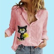 Kadın Moda Düğmeli Bluz Rahat İnce Uzun Kollu Üst Bayan Pamuklu Keten Baskılı Gömlek Pembe