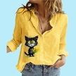 Kadın Moda Düğmeli Bluz Rahat İnce Uzun Kollu Üst Bayan Pamuklu Keten Baskılı Gömlek Sari