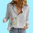 Kadın Moda Pamuk Keten Gömlek Bayan Dik Yaka Baskılı Üst Casual Düğmeli Uzun Kollu Bluz Gri