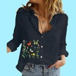 Kadın Moda Pamuk Keten Gömlek Bayan Dik Yaka Baskılı Üst Casual Düğmeli Uzun Kollu Bluz Siyah