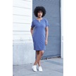 Kadın Modal İpeksi Hafif Esnek Kumaş Geniş Sıfır Yaka Patlı Düşük Omuzlu Yan Cepli Diz Boy Elbise-indigo Indigo