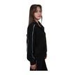 Kadın Modal Kumaş Kontrast Detaylı Rahat Kalıp Siyah Ceket Hırka Lacivert