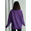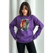 Kadın Mor Aslan Baskılı Oversize Bisiklet Yaka Sweatshirt Mor