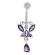 Kadın Mor Kelebek Model Sallantılı Çelik Piercing Gümüş