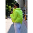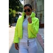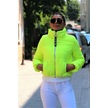 Kadın Neon Yeşil Dik Yaka Su Geçirmez Kısa Şişme Mont