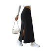 Kadın Nervürlü Örme Etek Yüksek Elastik Bel Yırtmaç Retro Uzun Etek Siyah