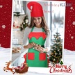 Kadın Noel Mutfak Önlüğü 2 Cepli Bayan Ayarlanabilir Aşçı Yeşil + Şapka, Tek Beden Diğer