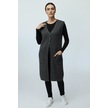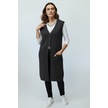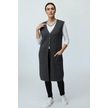 Kadın Önü 3 Düğmeli Üstten Cepli Uzun Yelek Koyu Gri