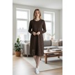 Kadın Önü Desenli Etek Yan Ucu Boncuklu Düşük Kol Tunik Kahverengi