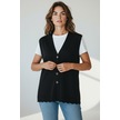 Kadın Önü Düğmeli Cepli Kalın Kışlık Kısa Yelek Mersa5 Siyah