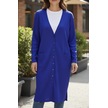 Kadın Önü Düğmeli V Yaka Cepli Mevsimlik Hırka Saks Mavi