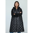 Kadın Önü Fermuarlı Yanlardan Cepli Kapşonlu Kapitone Kap Siyah