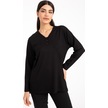 Kadın Orta Yaş ve Üzeri Dört Mevsim V Yaka Rahat Kalıp Likralı Viskoz Anne Penye Bluz 140-Siyah