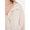 Kadın Oversize Basic Cepli Müslin Gömlek Bej