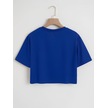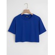 Kadın Oversize Bisiklet Yaka Düz Crop T-shirt - Saks Mavisi