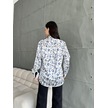 Kadın Oversize Ekru Renk Mavi Öpücük Detaylı Saten Gömlek-mavi Mavi