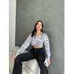 Kadın Uzun Kollu Şifon Gömlek Moda Kore Fit Geometrik Baskı Üst Büyük Gömlek Sarı