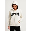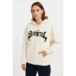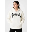 Kadın Oversize Kapüşonlu Sweatshirt Hoodie 3 İplik Şardonlu Pamuklu Kumaş, Önü Baskılı, Fermuarlı Ra Beyaz
