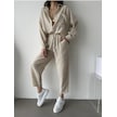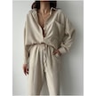 Kadın Oversize Keten Gömlek Pantolon Alt Üst Takım Bej