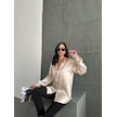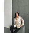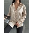 Kadın Oversize Taş Renk Saten Gömlek-taş Taş