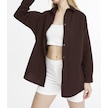 Kadın Oversize Uzun Basic Gömlek - Kahverengi