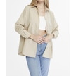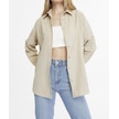 Kadın Oversize Uzun Basic Gömlek - Koyu Krem