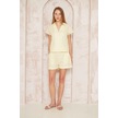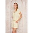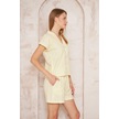Kadın Özel Kumaş Ceket Yaka Beli Lastikli Kısa Kol Gömlek Cepli Şort Takım 3625290 Sarı