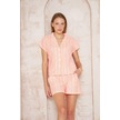 Kadın Özel Kumaş Ceket Yaka Beli Lastikli Kısa Kol Gömlek Cepli Şort Takım 3625290 Turuncu