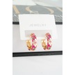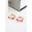 Kadın Özel Seri Mineli Çiçek Motifli Kararmaz 2 Cm Halka Küpe Seti - Pembe