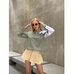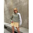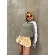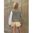Kadın Özel Tasarım Yaka Koldan Giymeli Düğmeli Çizgi Garnili Crop Boy Tesettüre Uygun Bluz Gömlek Haki