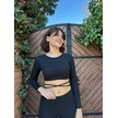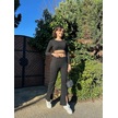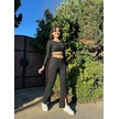 Kadın İspanyol Paça Pantolon Uzun Kollu Parmak Geçirmeli Crop Takım Gri