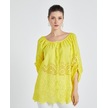 Kadın Pamuk Gömlek Ajurlu Detaylı, Rahat Kalıp Yazlık Tasarım Sarı