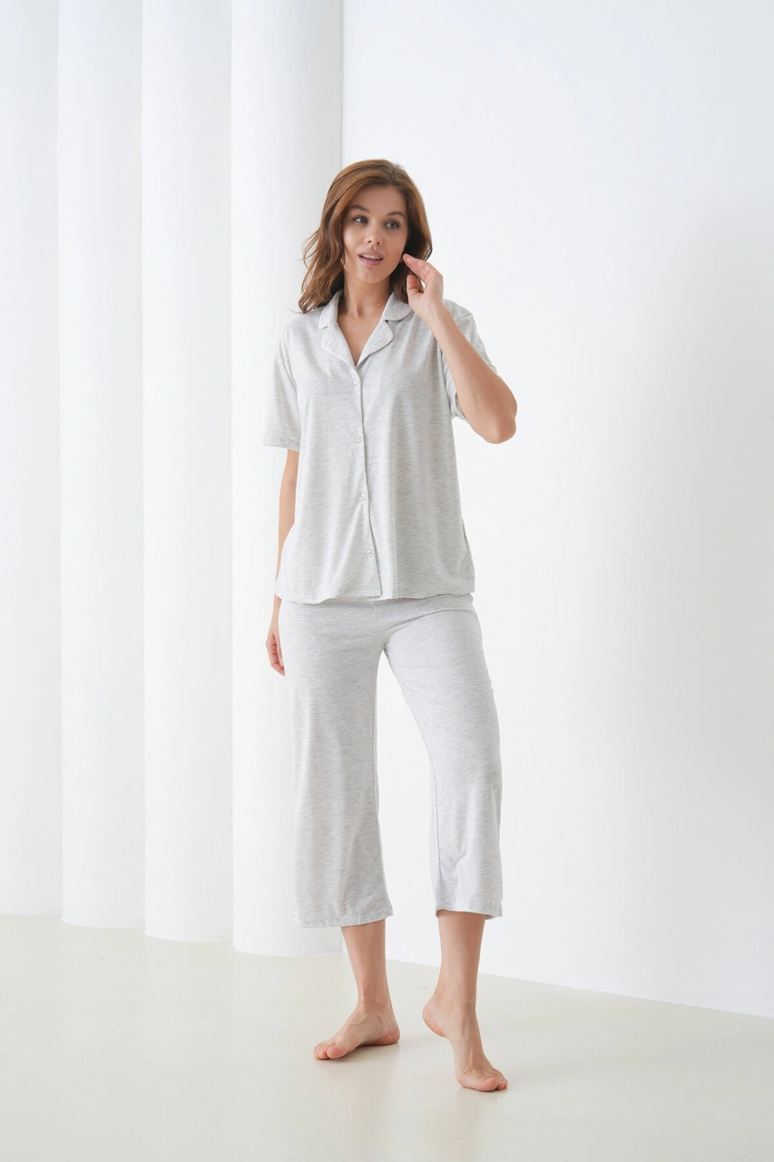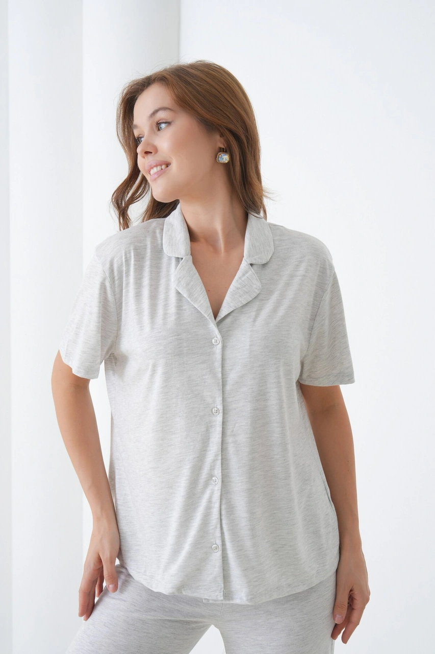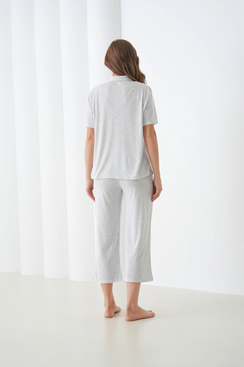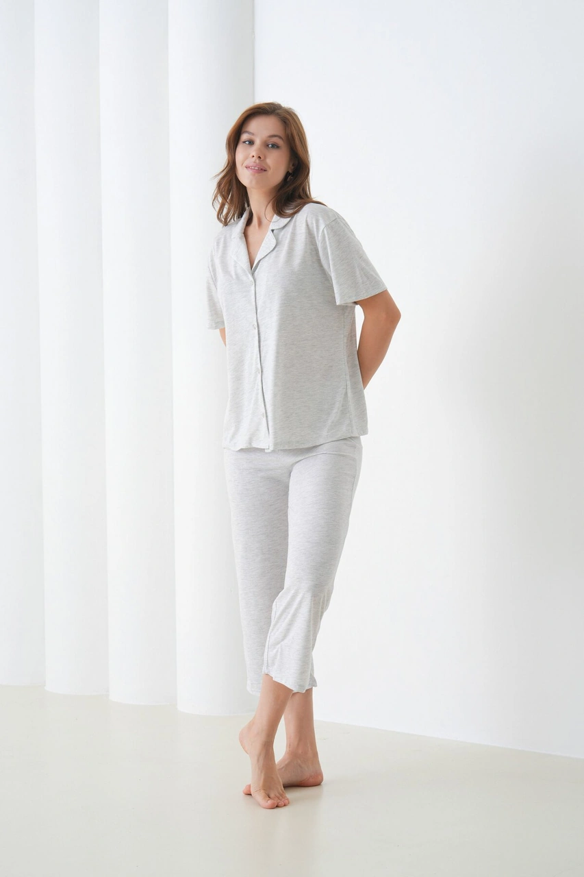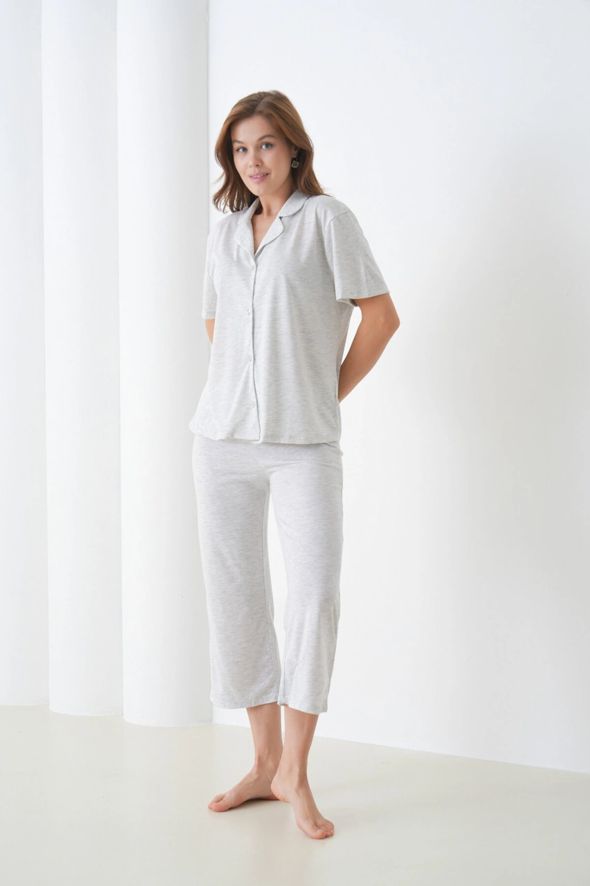 Kadın Pamuk Gömlek Kapri Şık Casual Curve Alt Üst Gecelik Takımı Antrasit