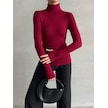 Kadın Parmak Detaylı Balıkçı Yaka Soft Bluz Bordo
