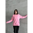 Kadın Pembe Bisiklet Yaka Oversize Sweatshirt Pembe