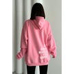 Kadın Pembe Do What Makes You Happy Baskılı Oversize Kapüşonlu Sweatshirt Pembe