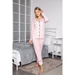 Kadın Pembe Renkli Pamuklu Likralı Düğmeli Çizgili Biyeli Pijama Takımı 70051 Pembe