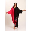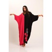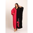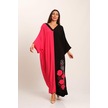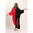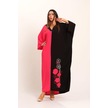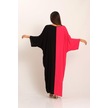 Kadın Pembe Siyah Garnili V Yaka Eteği Nakışlı Cepli Oversize Uzun Elbise - Pembe