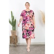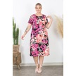 Kadın Pembe Somon Kırçiçeği Desen Midi Elbise Pembe