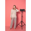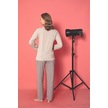 Kadın Penye Sıfır Yaka Bej Renk Uzun Kollu Pijama Takımı Bej