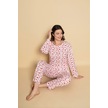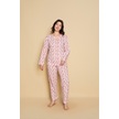 Kadın Penye Sıfır Yaka Bej Renk Uzun Kollu Pijama Takımı Beyaz Puanlı